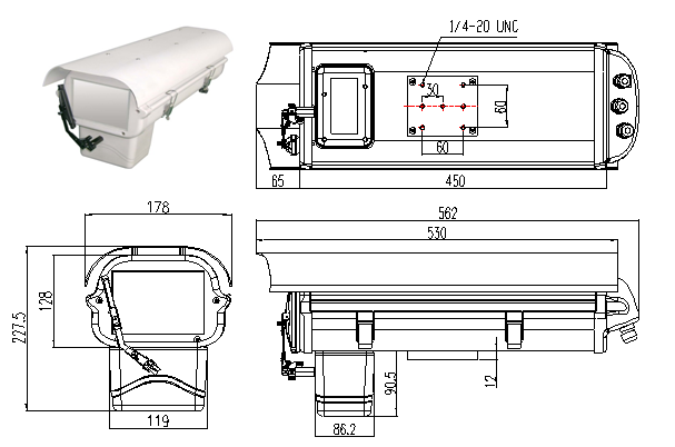 562(W)*178(H)*148(D)mm (不包括遮阳板 ) |